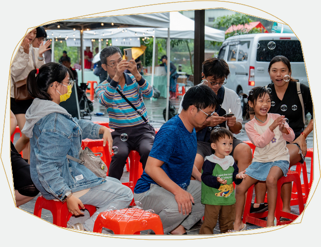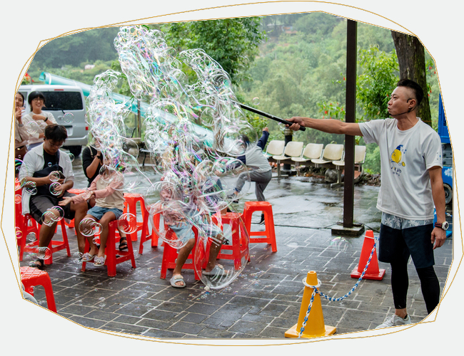 日期:114年10月24日(五)時間:14:00-15:00地點:紫東社區發展協會主舞台區活動介紹:由專業表演團隊帶來繽紛的泡泡互動秀,結合音樂、表演與觀眾互動。現場孩童歡笑連連,在滿天泡泡中追逐遊戲,成為當日最亮眼的亮點之一,為市集注入歡樂與活力氣氛。